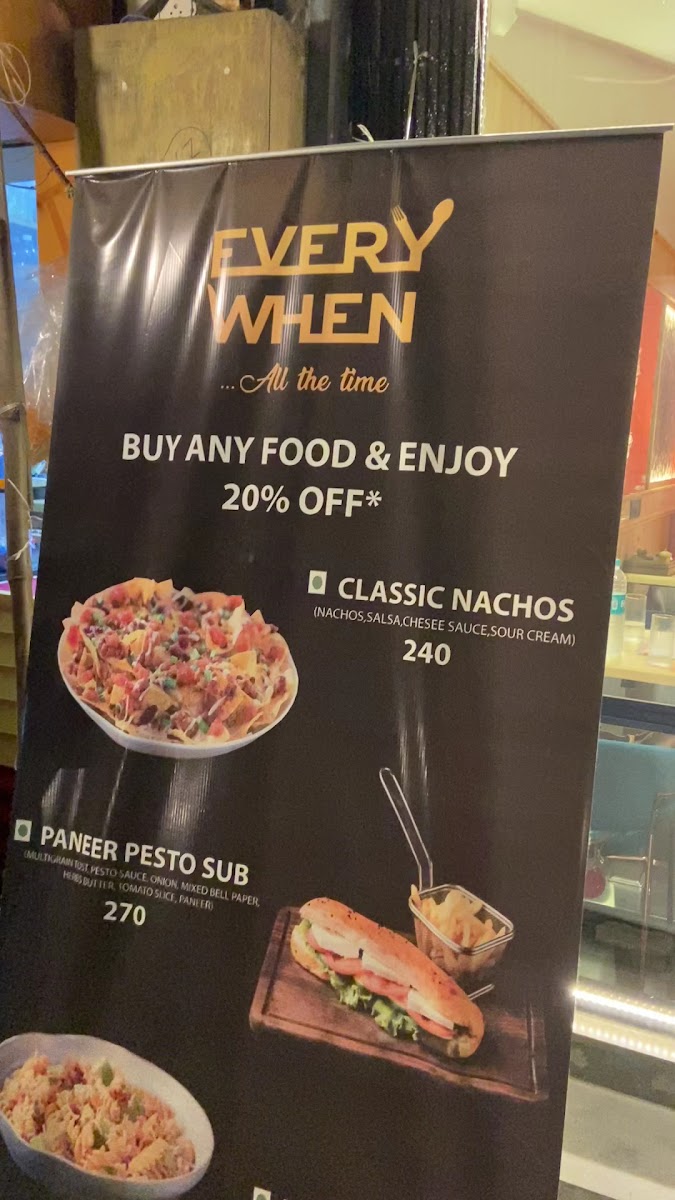 Welcome to Every When Cafe, a delightful new addition to the vibrant culinary scene in Versova, Mumbai. Nestled at 8 / A Aram Nagar, JP Rd, this cozy cafe boasts beautiful interiors that invite you in with warmth and charm. With just a short 10-minute walk from the Versova metro station, it's the perfect pit stop for those looking to unwind with delicious food and a captivating ambiance.